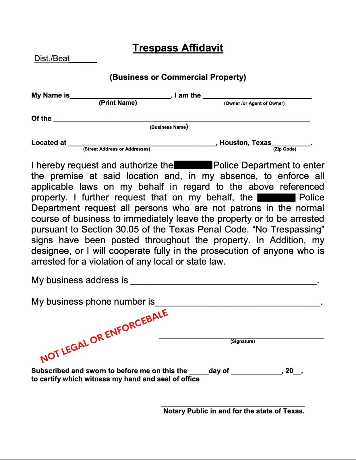 This police affidavit conflicts with Fourth Amendment protections and Texas law, which require a complainant. This affidavit is not legal and risks civil rights violations and legal challenges.